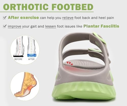 Engineered with a bionic design, our sandals provide excellent arch support that caters to your feet’s natural movement. The orthotic footbed enhances your gait, relieves back and heel pain, and effectively addresses common foot issues, including Plantar Fasciitis.